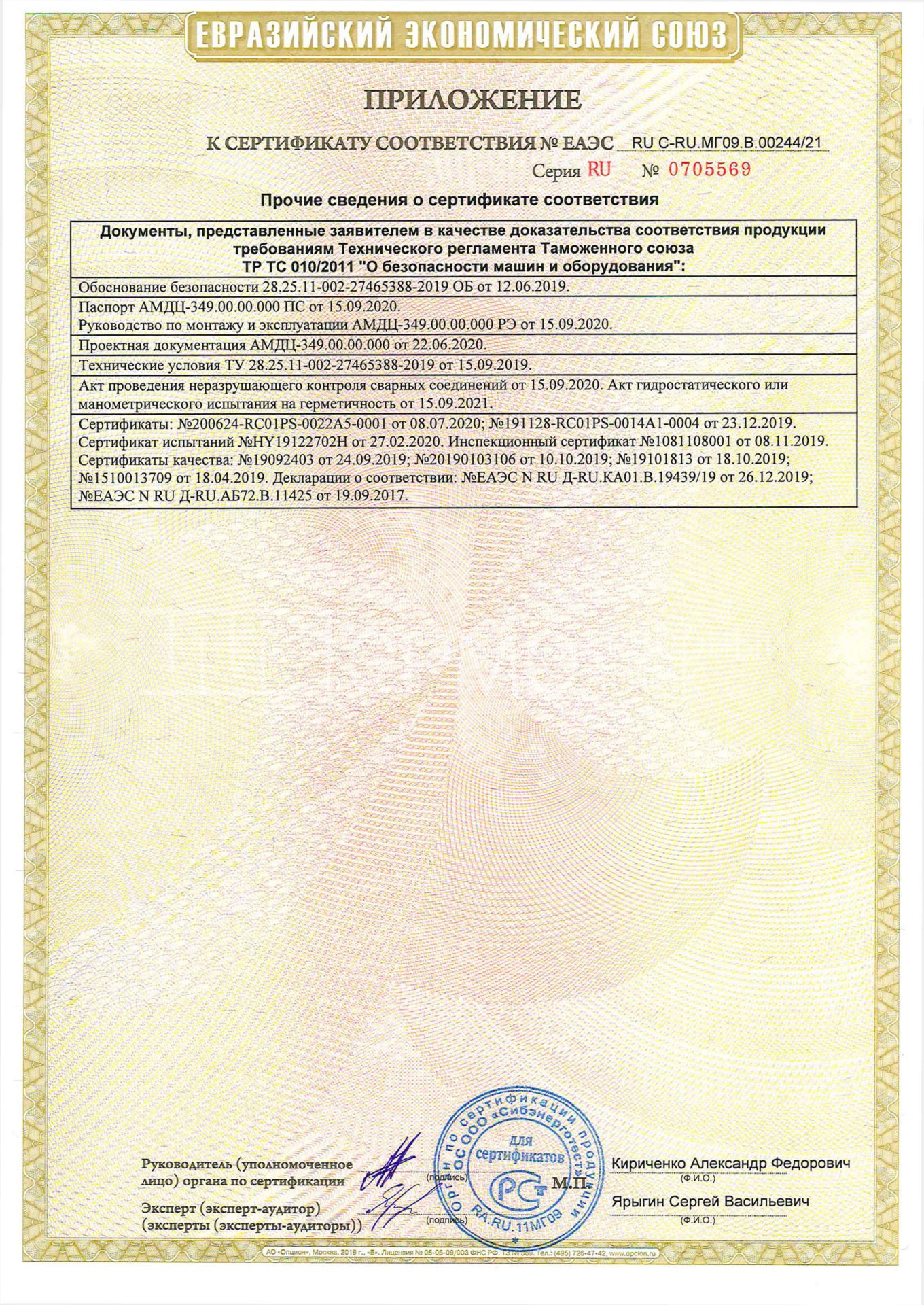 Сертификат ТР ТС 010/2011 для теплообменников ВП-ОПТ